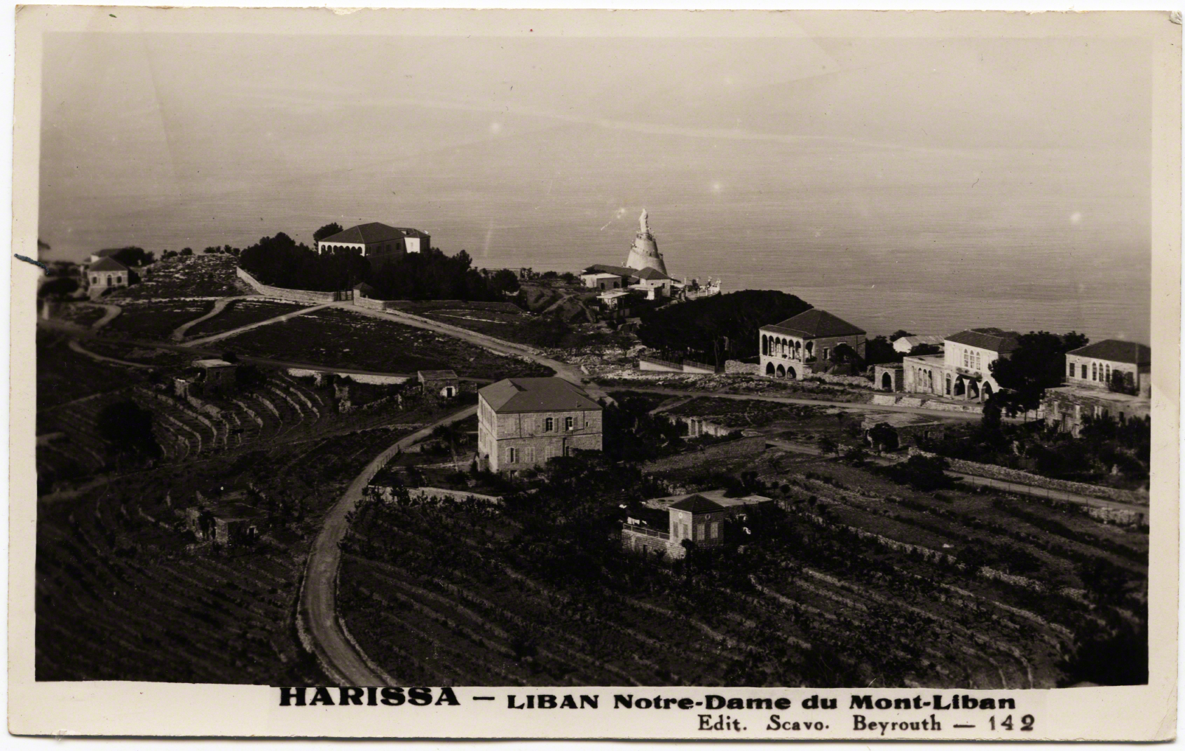 John Burckhardt, a pilgrim to the "Holy Land" from England, noted of the village in 1822: "Harissa is a well built, large convent, capable of receiving upwards of twenty monks" (184). Another priest, in 1830 noted the view from this spot in the terraces of the convent: “is extremely beautiful, commanding the bay of Kesrouan and the country as far as Djebail (Jbeil) on one tide, and down to Beirout (Beirut) on the other. Near it is a miserable village of the same name” (Conder: 159).