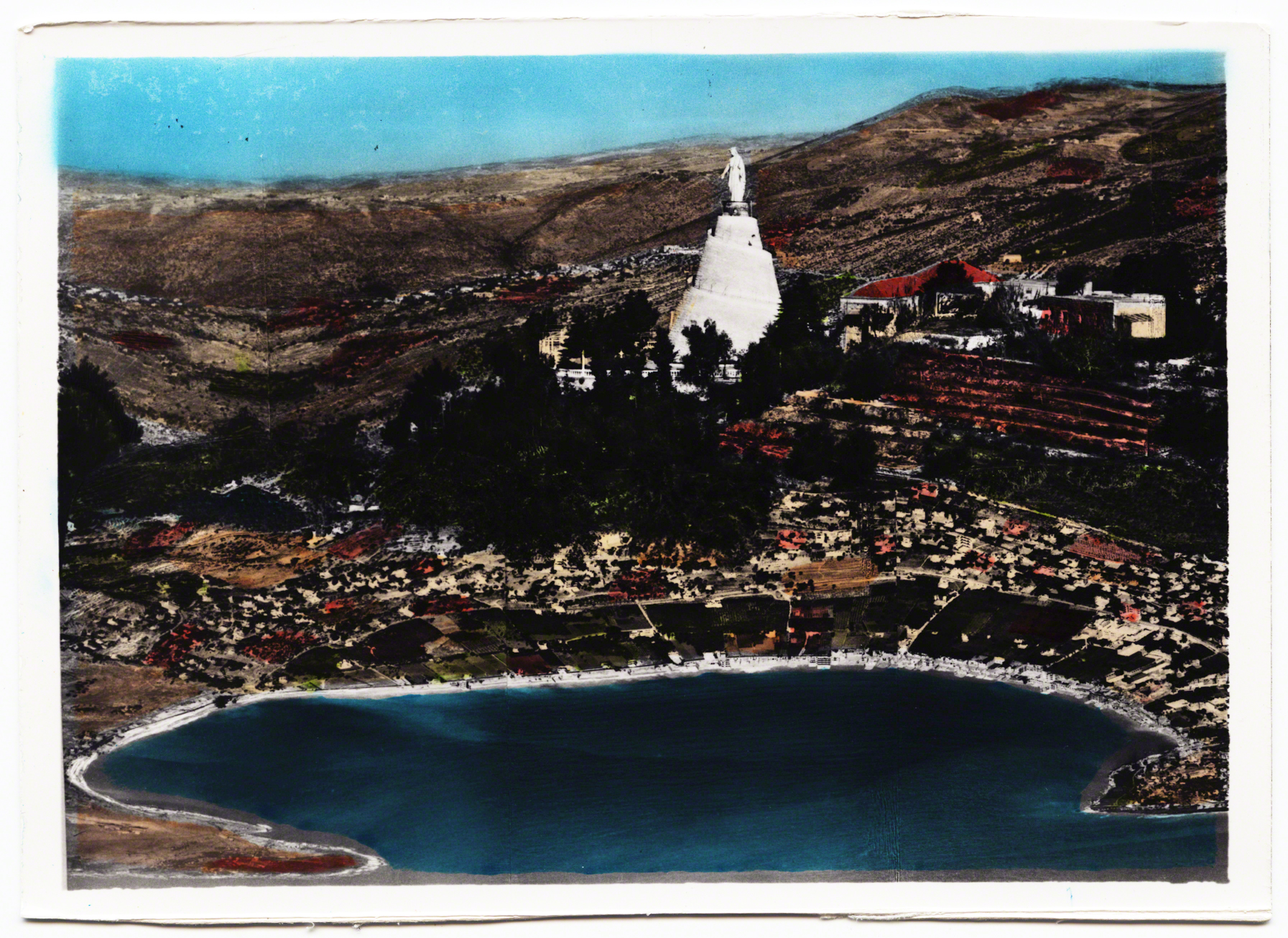 The Virgin Mary, Our Lady of Lebanon, would eventually take a shorter name. Her location became her name - Harissa - just as her presence indexed those who wanted to mark this area as a solidly Christian territory. Watching over the slopping lands she became an important site of pilgrimage and visuality. We not only see her, but imagery as if from the perspective of her eyes, the claim of control over which she governs. Jackson’s work on “vernacular landscapes,” in which a view is indexing a political, but also a social world, is relevant to Harissa (1984). Her perch on the mountain, and the huge number of postcards around her index, over and over again, mark the presence of Christianity and the development and urbanization of the Bay of Jounieh.