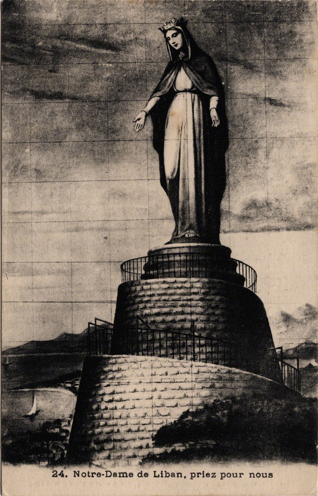 In 1904 the Maronite Patriarch Hoayek conceived of the idea to erect a statue of the Virgin Mary to mark the 50th anniversary of the “doctrine of the Immaculate Conception” (Durward 1908: 753). Mary was built in France and mounted in Lebanon in 1908. The statue was placed above Jounieh in a village called Harissa, which was the location of a long standing convent.